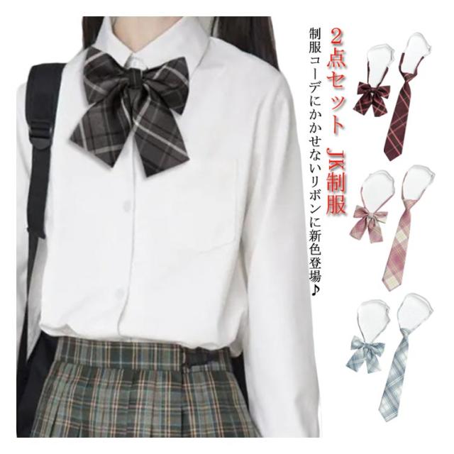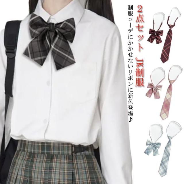 スクールリボン ネクタイ チェック柄 2点セット 制服用 女子高生 スクールリボン スクールネクタイ 送料無料 学生服 小物 DK JK 中学生 高校生 JK制服 コスプレ セーラー おしゃれ 学園祭 スクールウエア
