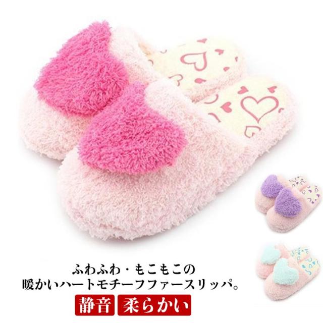 ハートモチーフ スリッパ ボアシューズ ファーシューズ ルームシューズ サンダル 秋冬 ファーサンダル ファーシューズ ファースリッパ 軽い 軽量 静音 柔らかい 室内 在宅 来客 かわいい 送料無料