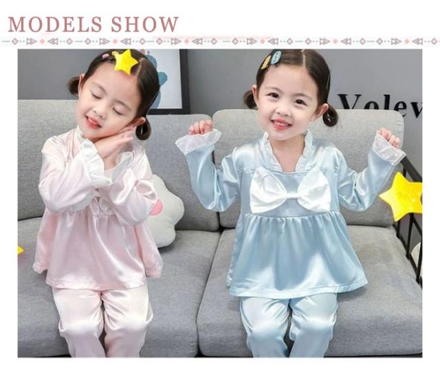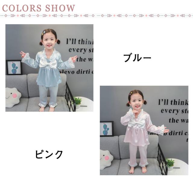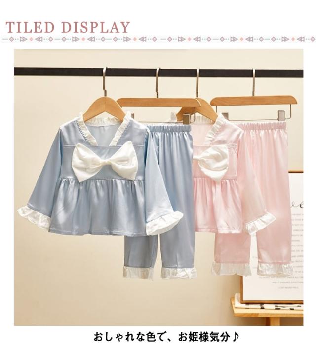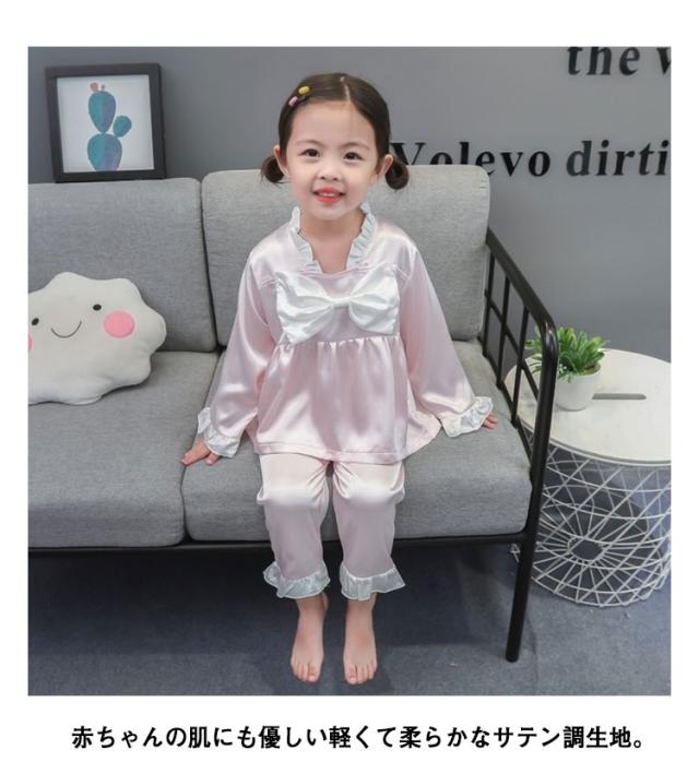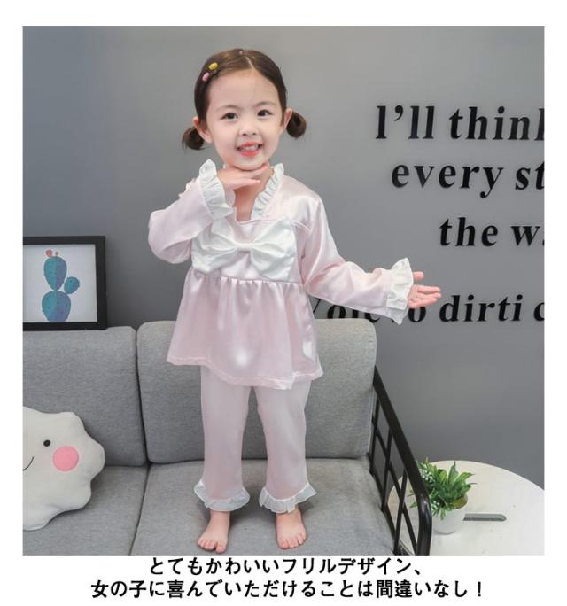 パジャマ キッズ 女の子 かわいい フリル おしゃれ 秋 長袖 部屋着 子供服 ルームウェア プリンセス お姫様 ナイトウェア 可愛い 寝巻き 春 90 100 110 120 130cm サテン調 シルクタッチ 上下セット 光沢 女児 幼児 ベビー服 送料無料