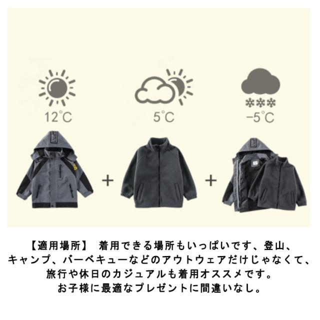 | 【デザイン】 ・前開きジッパーで開閉するデザイン。 ・フード付き; ・裏フリース付き、3in1; ・春秋冬ロング季節に適用します。 【素材構成】 ポリエステル、綿。防寒対策としてもしっかり活躍してくれる子供コートです;肌触りが良い素材を使用して、着心地が良いです。絶妙な生地感で、春秋冬の中で、いつでも着用できます。 【特色】 ・表面は程度よい光沢感があり、防風性にも優れています。 ・長時間の着用でも体の負担が少なく、体をしっかりと暖めてくれるコートです。 ・また通気性が素晴らしくて、汗をかいてもすぐに乾くので、寒い冬の日に子どもが風邪をひきにくいです。 ・ウエスト締めるデザイン:風入りを防ぎます; 【適用場所】 着用できる場所もいっぱいです、登山、キャンプ、バーベキューなどのアウトウェアだけじゃなくて、旅行や休日のカジュアルも着用オススメです。お子様に最適なプレゼントに間違いなし。 | |