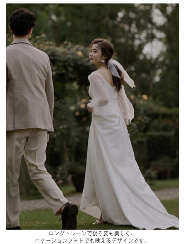 深いVネック ウェディングドレス ロングスリーブ シースルー シンプル ブライダル トレーンドレス 披露宴 ロングドレス 人気 大きいサイズ大人 上品 マキシ丈 海外旅行 写真撮影 ドレス 白 ワンピース ビーチフォト 前撮り 後撮り