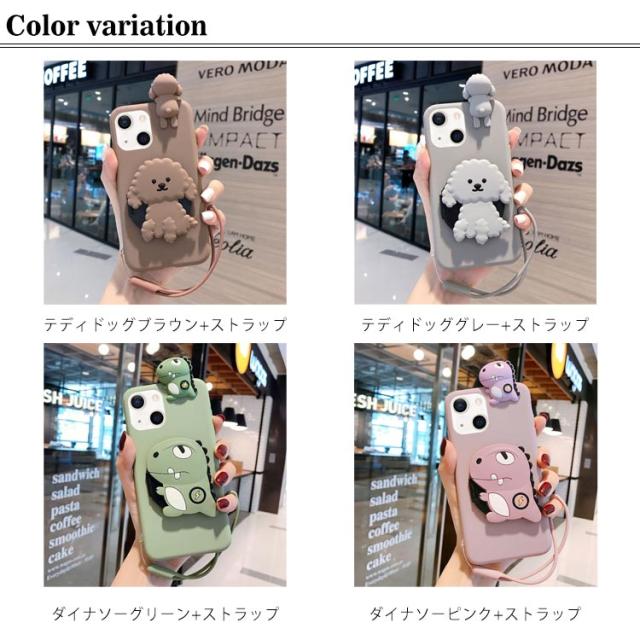 iphone13 ケース 韓国 おしゃれ 人気iphoneケース シリコン 大人可愛い テディ ダイナソー アイフォンケース iPhone5/5s iPhonese2(第二世代) ケース ミラー付き ハンドストラップ付き