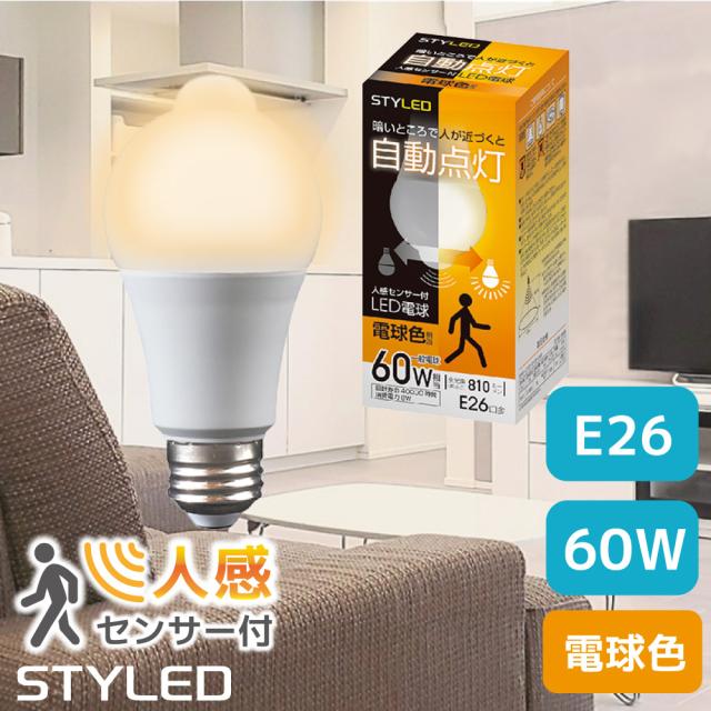 【人感センサー付】LED電球 60W相当 電球色 810ルーメン 人感センサー トイレ 玄関 廊下
