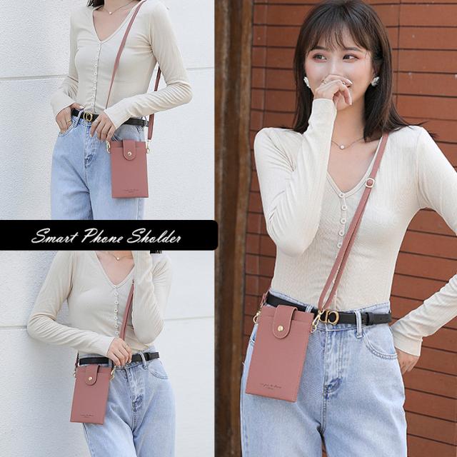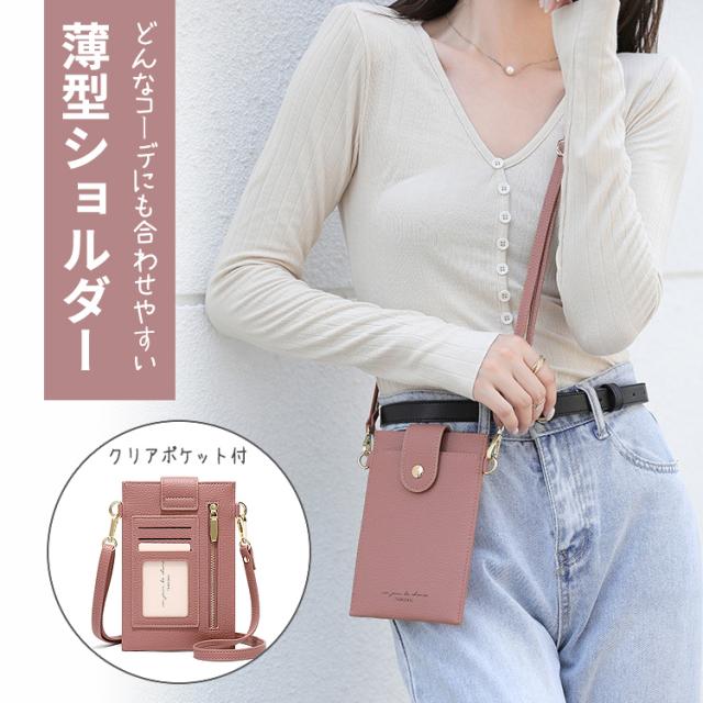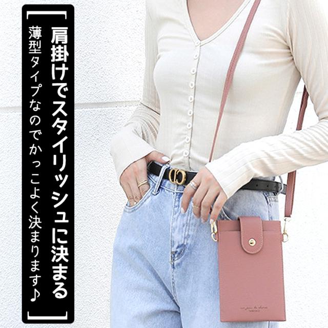薄型だけどスマホやカード等色んなアイテムが収納できる縦型スマホショルダーポーチです
