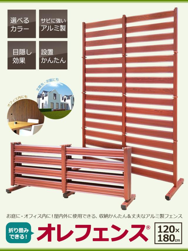 たためる アルミフェンス (幅120高さ180cm) 目隠し 自立式 木目調 フェンス アルミボーダーフェンス アルミ ルーバー 衝立 屋外 固定金具 おしゃれ オレフェンス パーテーション 柱 間仕切り ラティス OF1218 アルマックス 送料無料 土日出荷OK