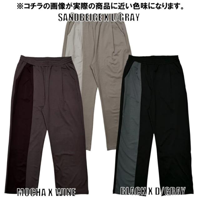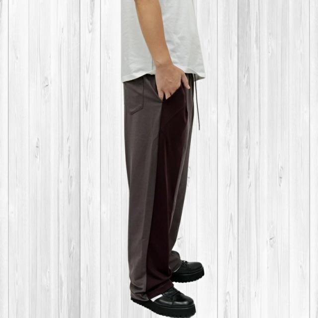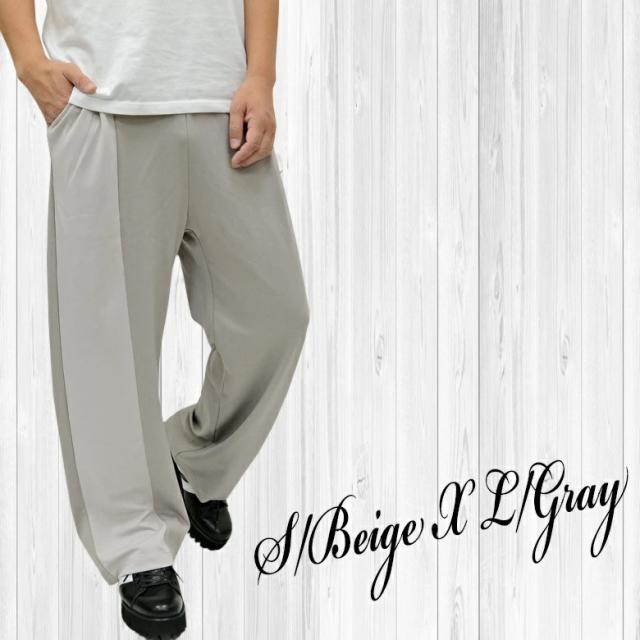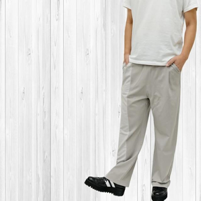 【閉店セール】アシメトリーラインリラックス ワイドパンツ rv8557 イージーパンツ メンズ 切り替えイージーワイドパンツ 韓国 韓国系 ストリート 無地 ルームウェア ワイドシルエット タック ライン タックパンツ ワイドパンツ ベージュ ワイン ブラック M L パンツ