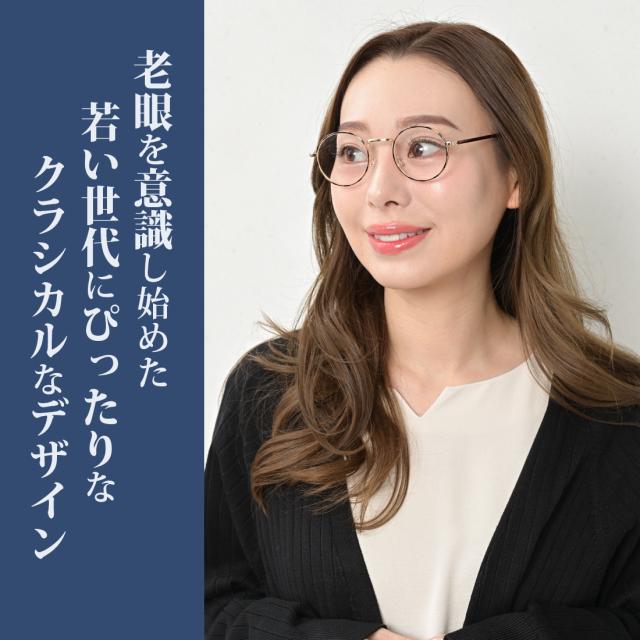 トレンドのラウンド(丸メガネ)採用。レトロでファッション性が高く、老眼鏡のイメージを覆すおしゃれさを実現しました。