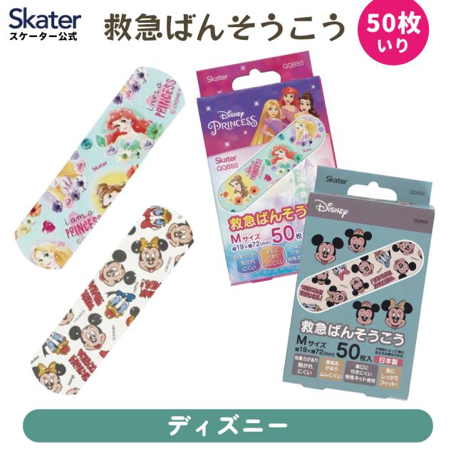 絆創膏 ばんそうこう キャラクター 子供 かわいい ディズニー スケーター QQB50 【傷テープ 傷 キズ 怪我 ケガ 救急 キズバンド 幼稚園 小学生 女の子 男の子 キズテープ 傷パッド】