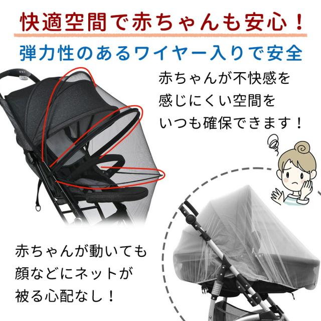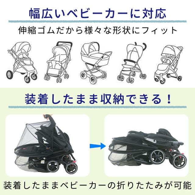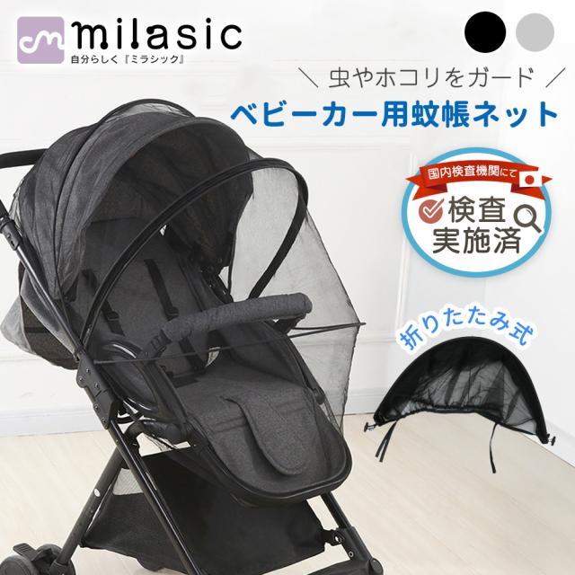 ベビーカー 蚊帳 ベビーカーカバー ベビーカー用品 虫除け 虫よけ ダブル開閉ファスナー 折りたたみ式 ベビーカー用 ネット 着脱簡単 ホコリよけ ワイヤー入り コンパクト 無地 MILASIC ポイント消化