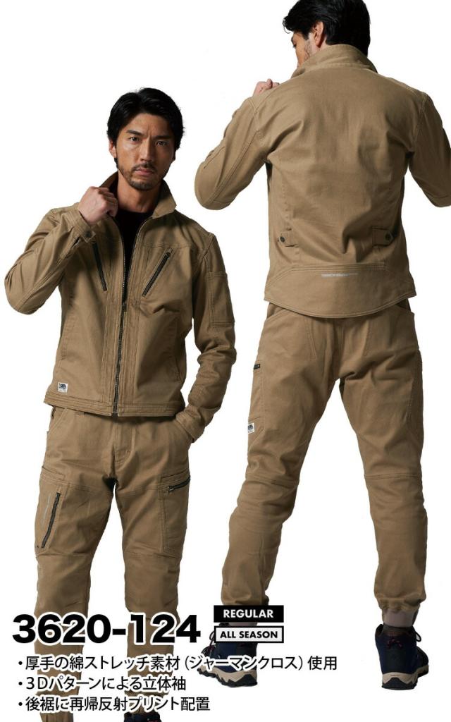 2022年 寅壱 新色登場 3620-124-3620-219 長袖ブルゾン カーゴパンツ 上下セット 厚手 綿 ストレッチ オールシーズン 再帰性反射 作業着 作業服 かっこいい おしゃれ メンズ