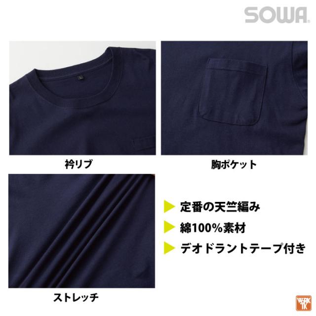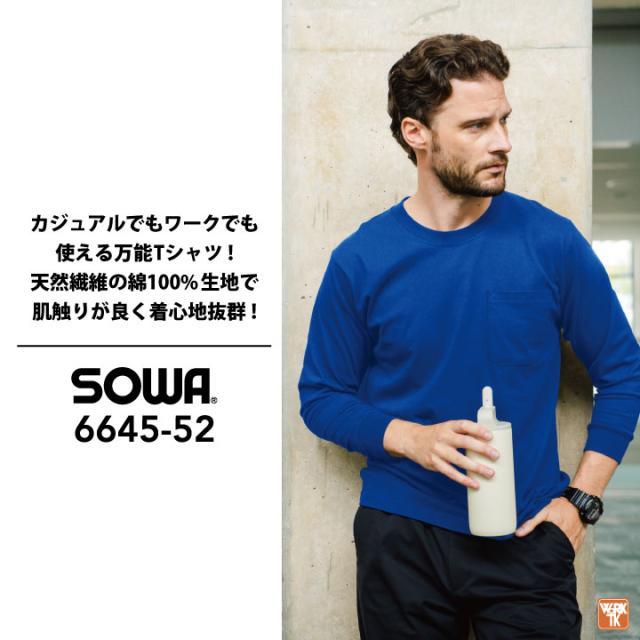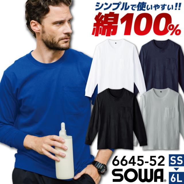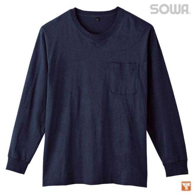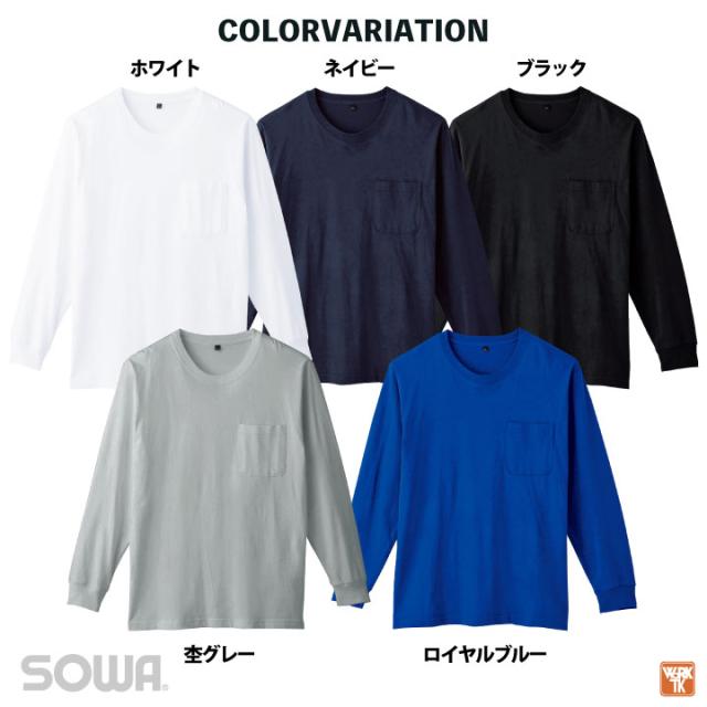 桑和 長袖 Tシャツ 綿100 天竺 ポケット付き ストレッチ 消臭 吸汗 カジュアル おしゃれ 作業服 ユニフォーム 春夏 秋冬 SOWA sw-6645-52