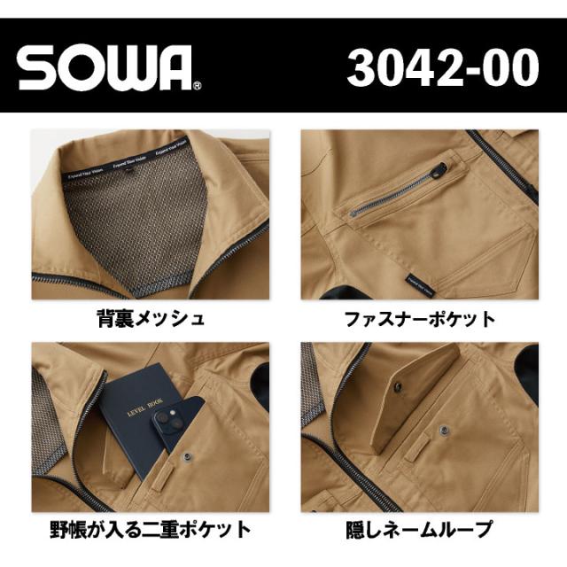 桑和 長袖 ブルゾン ストレッチ 制電 消臭 カジュアル おしゃれ 作業服 ユニフォーム 春夏 秋冬 SOWA sw-3042-00