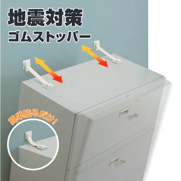●ゴムが伸びて衝撃吸収!ご家庭からオフィスまで、棚・キャビネット・冷蔵庫・家具等の転倒防止に。