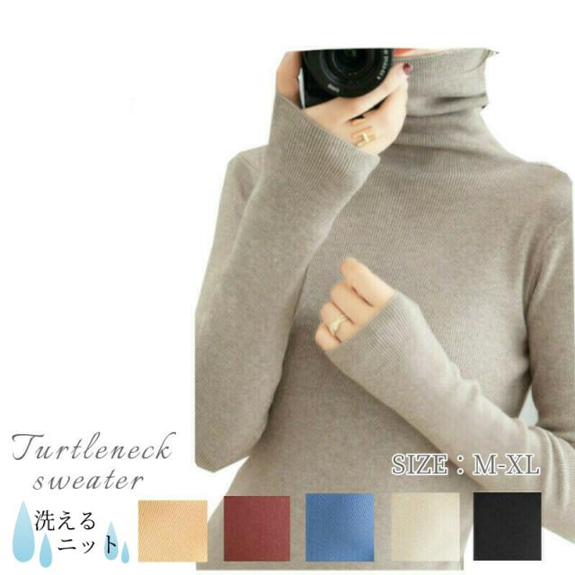 タートルネック レディース ニット タートルネックセーター セーター 洗える 洗濯可能 秋 冬 黒 ブラック ボルドー 白 アイボリー ベージュ ブルー おしゃれ かわいい シンプル プレゼント 送料無料