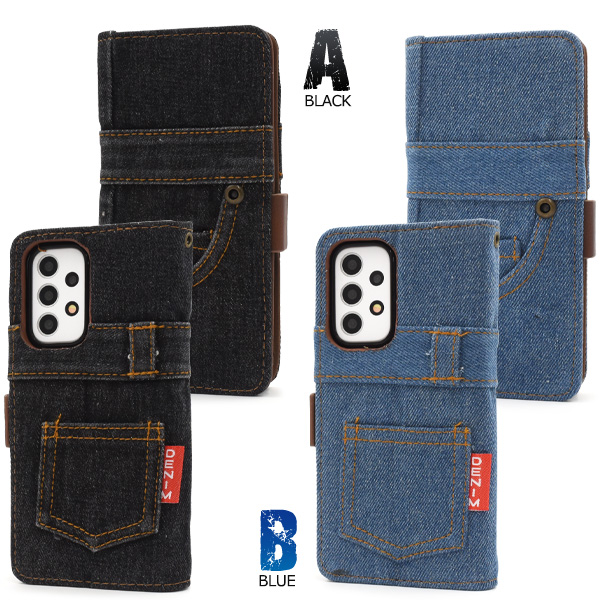 スマホケース Galaxy A53 5G SC-53C SCG15 UQ mobile ポケットデニムデザイン スマホ 手帳型 ケース ジーンズ地 保護 カバー ジーンズ地 ギャラクシー 定期入れ ポケット 手帳型ケース シンプル 液晶 ジーンズ カジュアル スマートフォン スマートホン ストラップ 青色 ブルー