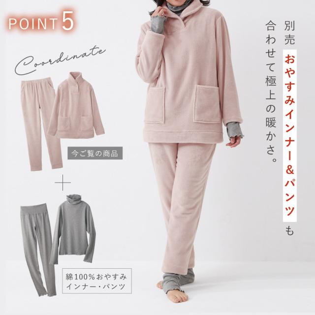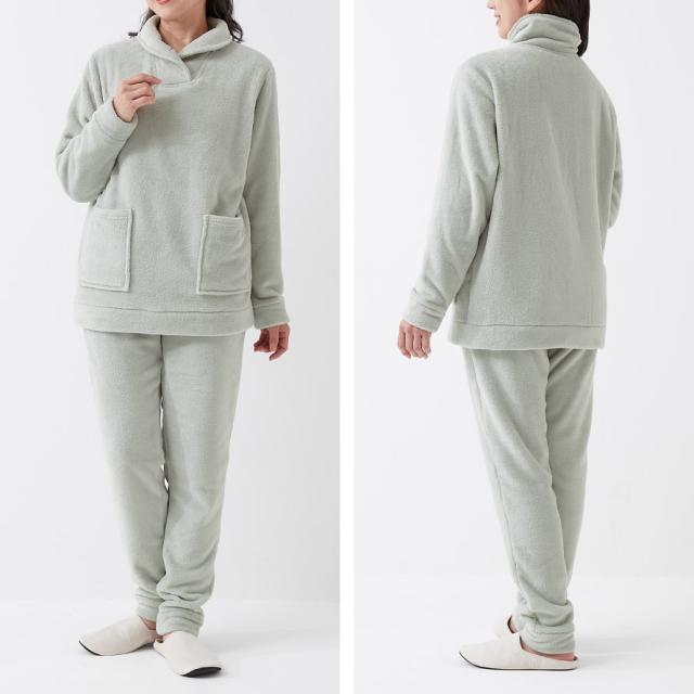 パジャマ レディース 冬 暖かい 首元 あったか 真冬 ハイネック 厚手 長袖 M L LL ハイネック 襟付き 首まで暖かい ルームウェア ふわふわ フリース ふわふわ毛布の温もりパジャマ 女性用 ポケット付き 両サイド 部屋着 寝巻 母 着る毛布 もこもこ 寒さ対策