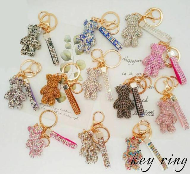 キーホルダー バッグチャーム キラキラ ビジュー キーリング チャーム ストラップ バッグアクセサリー クリスマス 誕生日 ホワイトデー プレゼント プチギフト クマ くま レディース かわいい おしゃれ ストーン ク キラキラグッズ 送料無料