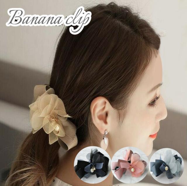 バナナクリップ リボン 大きめ しっかり パール シンプル 大 ヘアアクセサリー 髪留め 髪飾り かわいい おしゃれ 簡単 ヘアアレンジ ヘアアクセ ヘアクリップ ブラック グレー ピンク ベージュ プチギフト プレゼント ギフト 1000円ポッキリ 送料無料