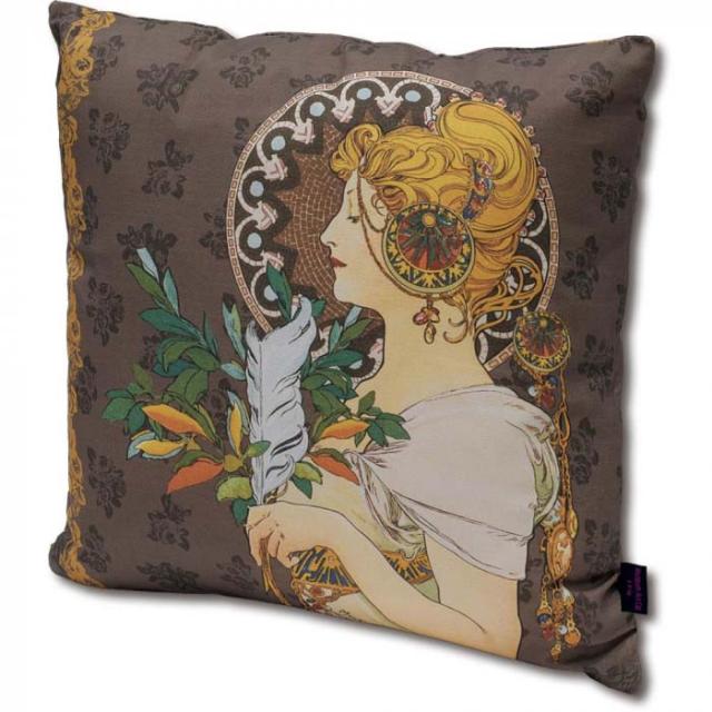 ユーパワー 名画クッションカバー ミュシャ「羽根」 AC-01515 45×45cm ※カバーのみ 【メール便送料無料】