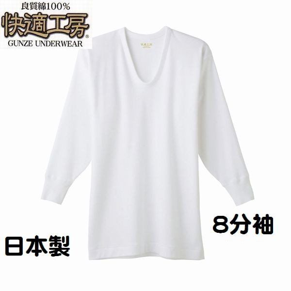 グンゼ 紳士 8分袖U首 シャツ 快適工房 メンズ インナー 肌着 綿100% 日本製 送料込み3810