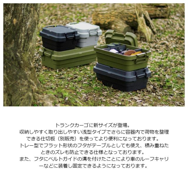 Army アーミー トランクカーゴ 18L スタッキング蓋 ロータイプ (収納ボックス 浅型 荷物 整理整頓 アウトドア レジャー テーブル 積み重ね ベルトガイド 荷台 日本製 国産 カーキ ブラック 黒 グレー 灰 おしゃれ)