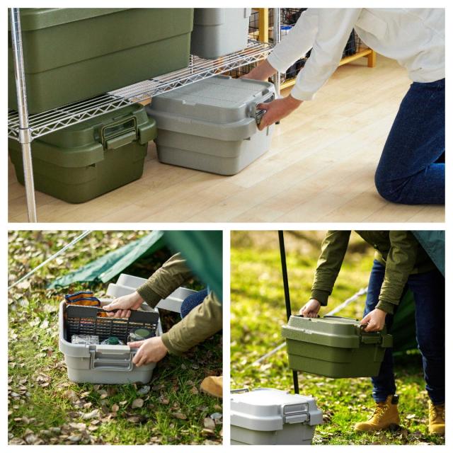 | 説明 | トランクカーゴに新サイズが登場。 収納しやすく取り出しやすい浅型タイプでさらに容器内で荷物を整理できる仕切板(別販売)を使ってより便利になっております。 トレー型でフラット形状のフタがテーブルとしても使え、積み重ねたときのズレも防止できる仕様となっております。 また、フタにベルトガイドの溝を付けたことにより車のルーフキャリーなどに装着し固定できるようになっております。 |