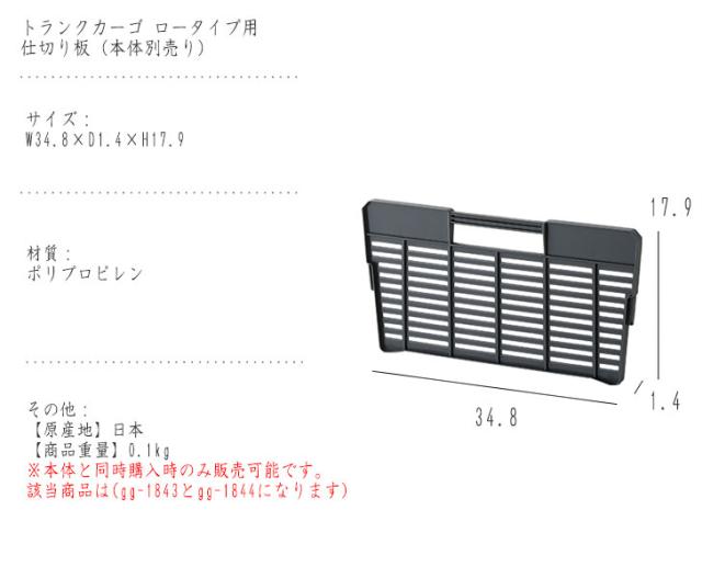 | 品名 | 【本体とセット販売のみ】Army アーミー トランクカーゴ ロータイプ用 仕切り板 (本体別売り) |