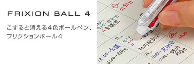 特長:こすると消えるフリクションの4色ボールペン「フリクションボール4」