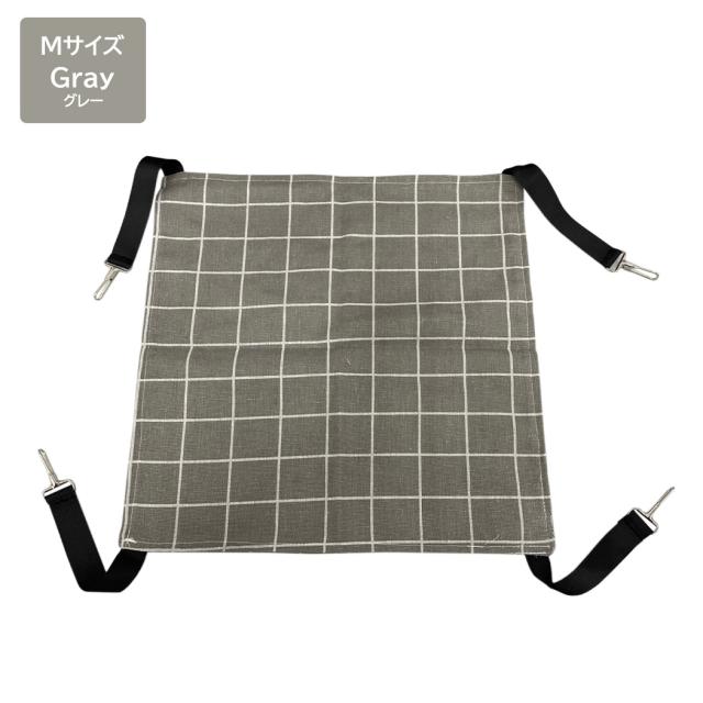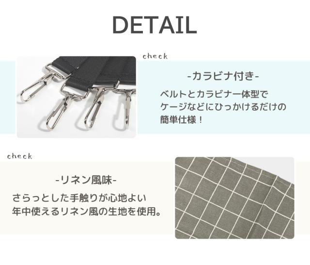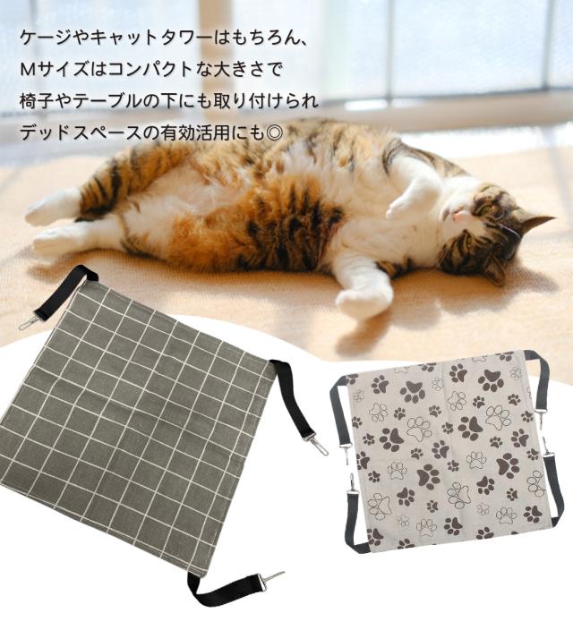 即納 猫用 ハンモック ペット用品 猫用品 キャットベッド ケージ ぶら下がり 吊り下げ カラビナ付き 簡単固定 シンプル おしゃれ インテリア 格子柄 肉球柄 寝心地 リネン風 昼寝 リラックス コンパクト デッドスペース 有効活用 紐アジャスター 通気性 オールシーズン