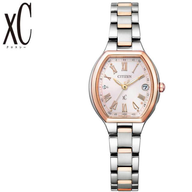 | 「シチズン」(CITIZEN)ブランドの時計で、工作機械の分野でもスイス式自動旋盤を中心とする「シンコム」(Cincom)ブランドで認識されています。 一時は腕時計の機械体(ムーブメント)の生産量世界第一位(グループ)を誇り、現在も国内最大手、世界シェアの3割を超えています。シチズンの中でも様々なシリーズが生み出され、カンパノラ(CAMPANOLA)やエクシード(EXCEED)、アテッサ(ATTESA)、プロマスター(PROMASTER)、クロスシー(xC)、などがある。 前を向く女性を応援するエンパワーウオッチブランド、シチズンxC(クロスシー)。ベーシックコレクションで人気のトノー型モデルに、シックで愛らしいデザインのローマ字フォントタイプが新登場。 光にインスパイアされた、やわらかなデザインが魅力のトノー型モデルです。 文字板はフェミニンな印象の淡いピンクカラー。洗練されたデザインのローマ字フォント、4時と5時の間にあるTYO位置にはきらめく光のアクセントが女性の心をくすぐります。 ケースとバンドの隙間にピンクゴールドをあしらった、クロスシーらしさが漂うツートン仕様。上品な華やかさを演出しています。