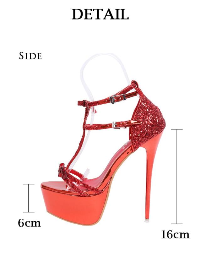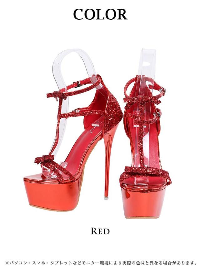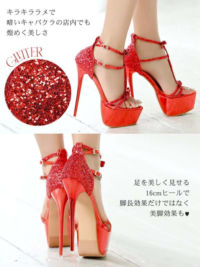 キャバ サンダル キャバサンダル 靴 キャバシューズ キャバ靴 ヒール レディース ハイヒール Ryuyu 赤 スパンコール キ