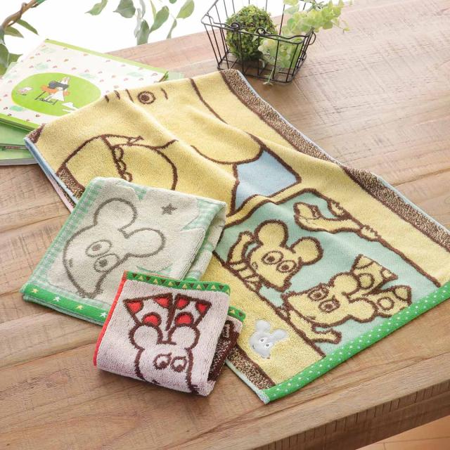 ミニタオル ねずみくんのチョッキ いつも一緒 25×25cm ( ねずみくん 手拭き ハンカチ タオルハンカチ 綿100 ミニハンカチ ウォッシュタオル 手ふき 手洗い タオル キャラクタータオル 絵本 )