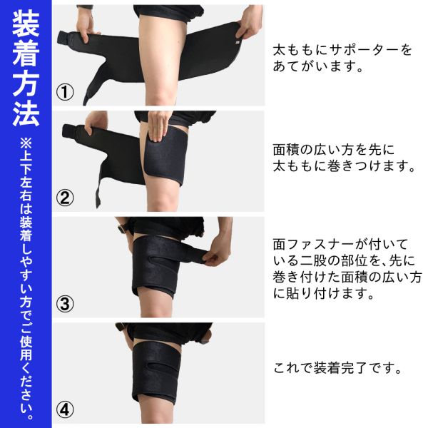 2か所の面ファスナーで太ももをがっちり固定できるサポーターです。