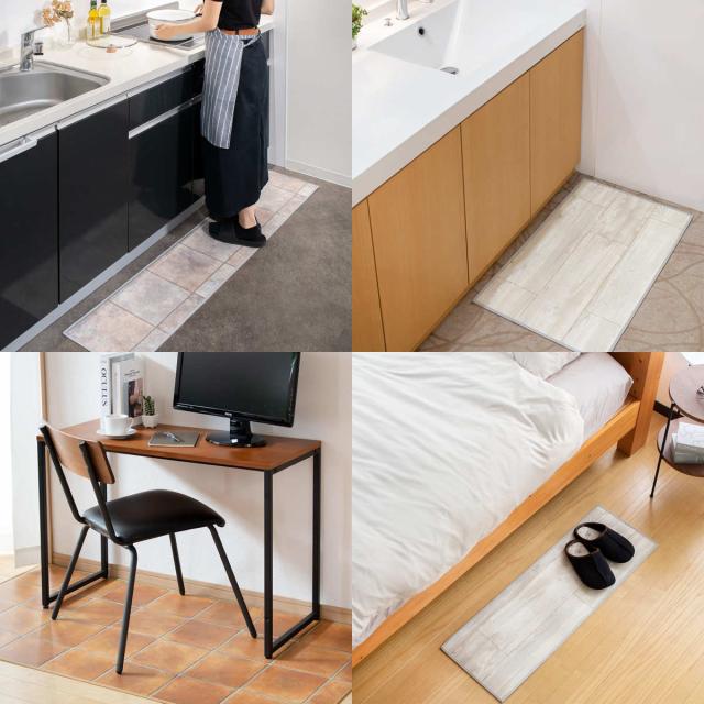キズや汚れを守ってくれる万能なマットは玄関だけでなく、様々な場所でご使用いただけます。水や油が付きやすいキッチンや洗面、ランドリー、子供部屋にもピッタリです。