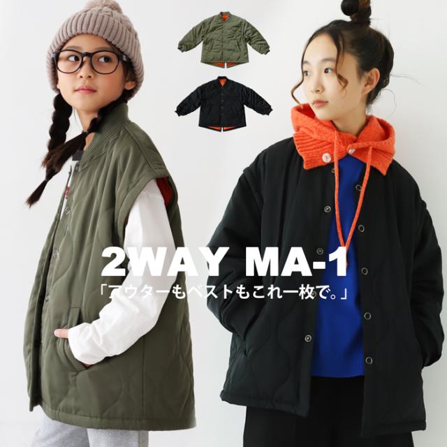 【検索ワード】2WAY MA-1 キッズ 子供服 ジュニア アウター 長袖 ノースリーブ 2way キルティング 羽織り ゆったり 高級感 ジャケット コート ジレ 袖取り外し可 防寒 防風 あったか 暖かい 前開き レイヤード風 前後差 ビッグアウター オーバーサイズ ミリタリージャケット 低学年 高学年 中学生 中高生 120cm 130cm 140cm 150cm 160cm 双子コーデ プレゼント お祝い 出産祝い 秋 冬 キッズ 男の子 女の子 ガール ガールズ 通学 お出かけ お洒落 アンティカ antiqua おしゃれ 可愛い かっこいい