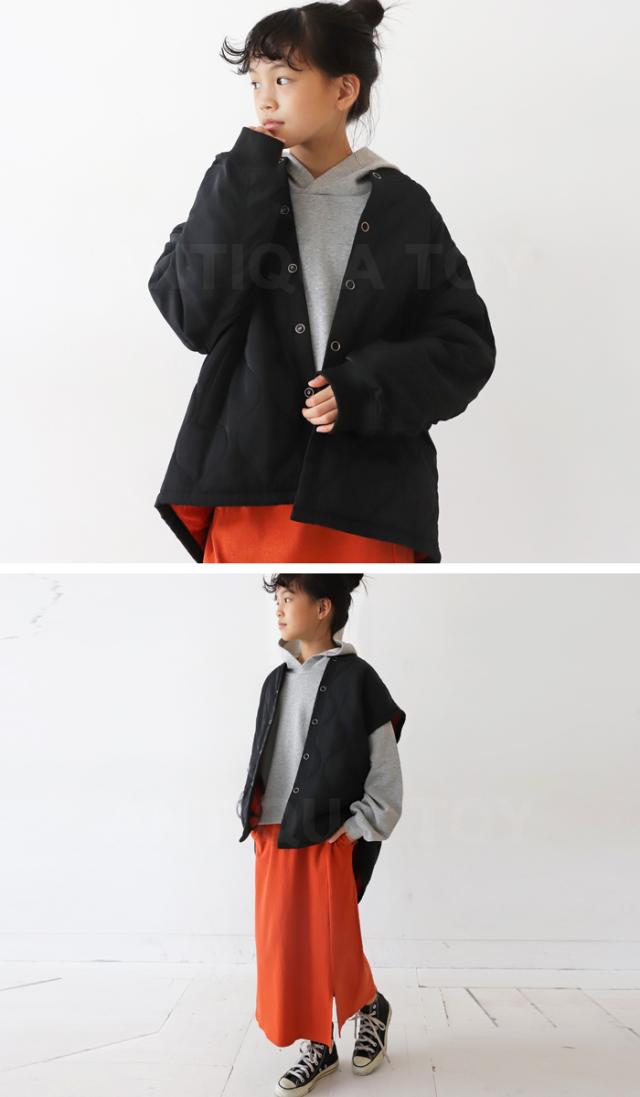 yt-00004 キッズ 子供服 男の子 女の子 ジュニア 低学年 高学年 中学生 中高生 長袖 ノースリーブ 2way キルティング 羽織り ゆったり 高級感 ジャケット コート ジレ