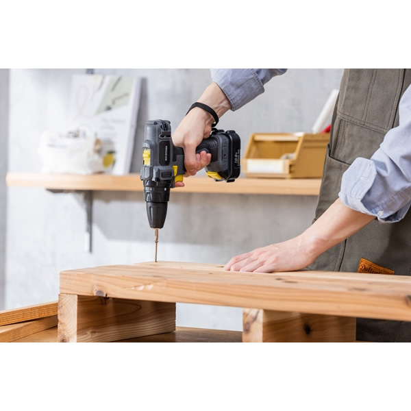DIY初心者〜中級者におすすめのドライバドリル ■商品サイズ(cm):幅約20×奥行約7×高さ約21 ■質量: 本体のみ:約830g バッテリー:約220g ■定格電圧:DC 10.8V ■充電池:リチウムイオン二次電池 ■充電池容量:1500mAh ■充電時間:約60分 ■最大チャック把握経:10mm ■クラッチ段数:13段 ■無負荷回転数(min-1 回/分): 低速:0-350min-1 高速:0-1300min-1 ■最大トルク:28N・m ■使用可能なビットサイズ:直径1〜10mm(六角/丸軸対応) ■ACアダプター仕様: 入力:AC100-240V、50/60Hz 出力:DC13.5V、1.5A ※記載は商品仕様の一部です。仕様説明不足等の理由での返品はできません。特に適合等は必ずご確認ください。