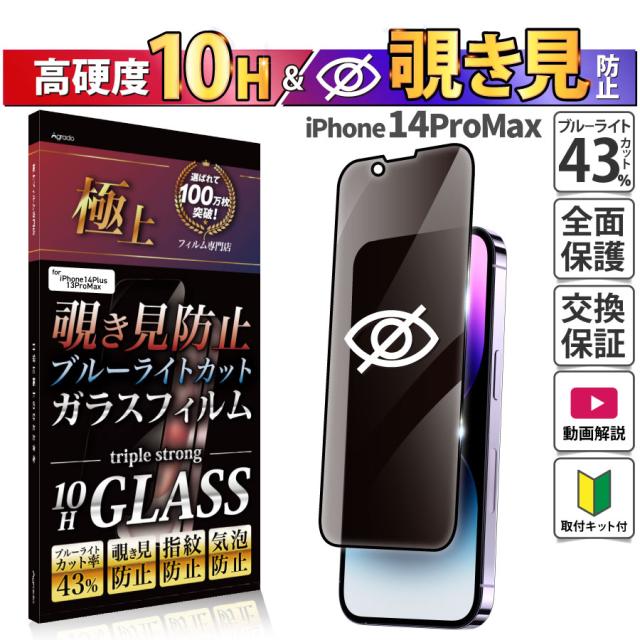 iPhone 14 ProMax ガラスフィルム 覗き見防止 ブルーライトカット かんたん 安心 プライバシー 全面保護 スマホフィルム 強化ガラス のぞき見防止 保証 アイフォン アイホン おまけ付き 防水ケース ポイント消化 除き見