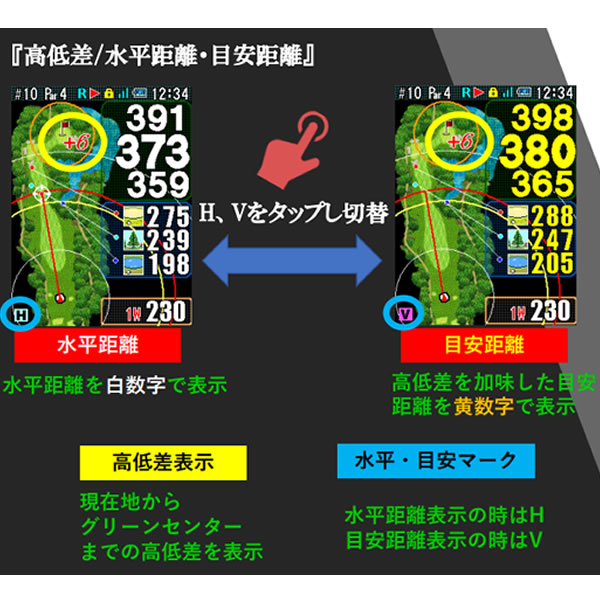 ・水平距離、目安距離、高低差、推奨番手