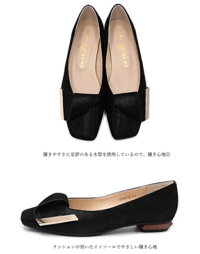 cavacava サヴァサヴァ オーナメントローヒールパンプス 1320495 スクエアトゥ パンプス 本革 レザー レディース 靴 歩きやすい