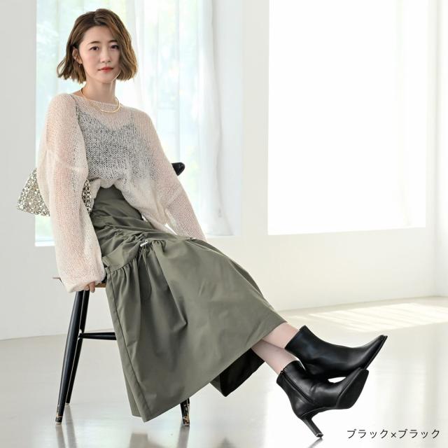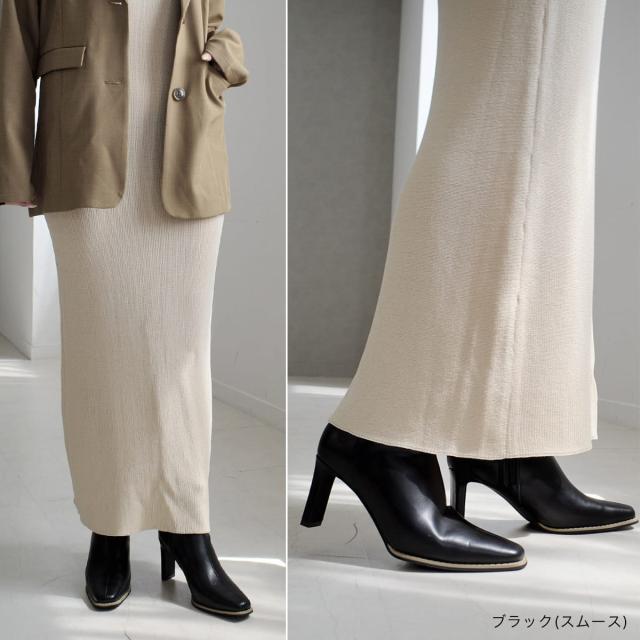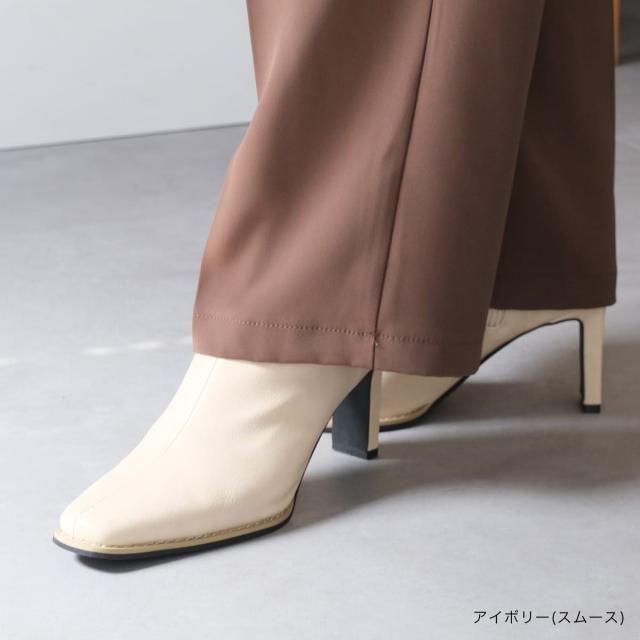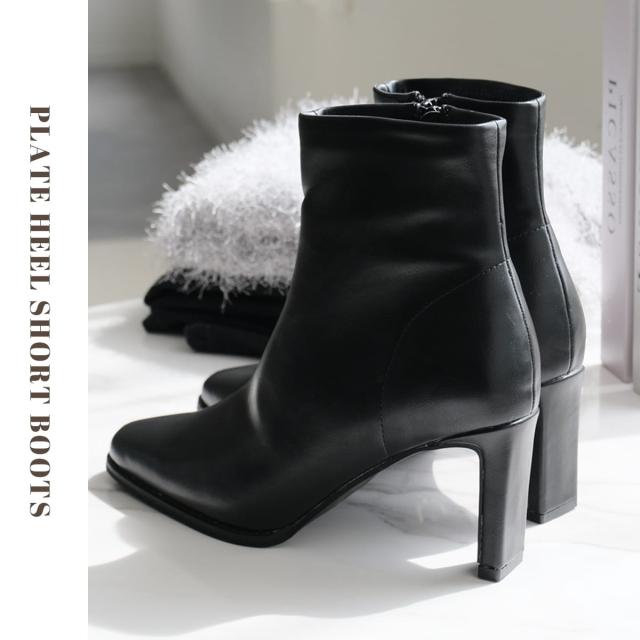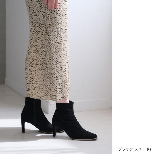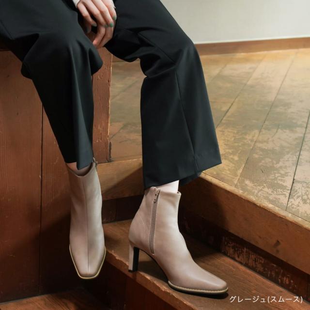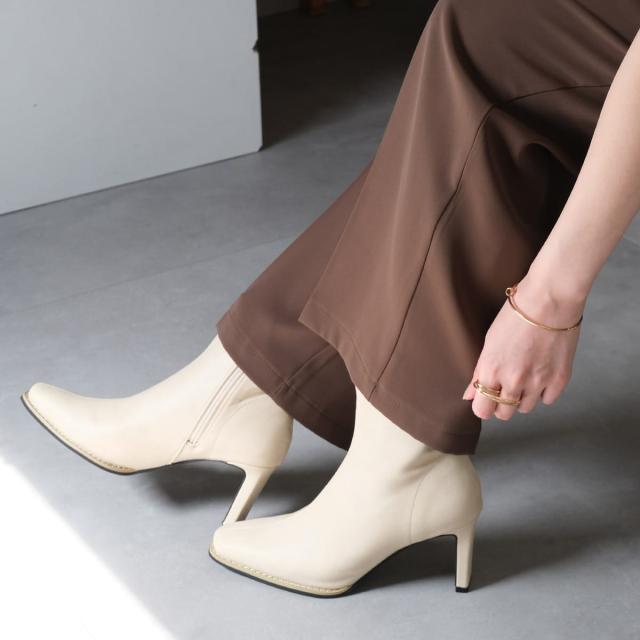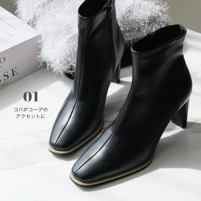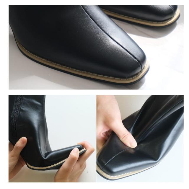 プレートヒールでほっそりとした足元を叶えるスクエアトゥブーツ