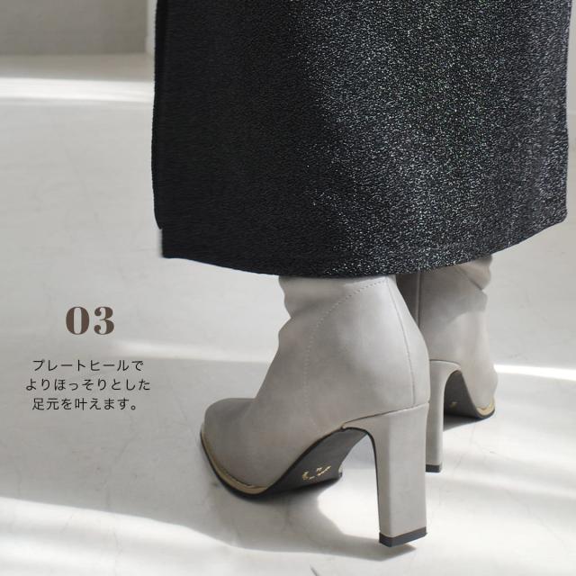 ブーツ 歩きやすい 履きやすい スクエアトゥ 7.5センチヒール 美脚 レディース プレートヒール 柔らか ブラック グレー ホワイト 秋冬 痛くない 白 クッション ジッパー サイドファスナー 秋新作 送料無料 CX3216 アミアミ あみあみ amiami