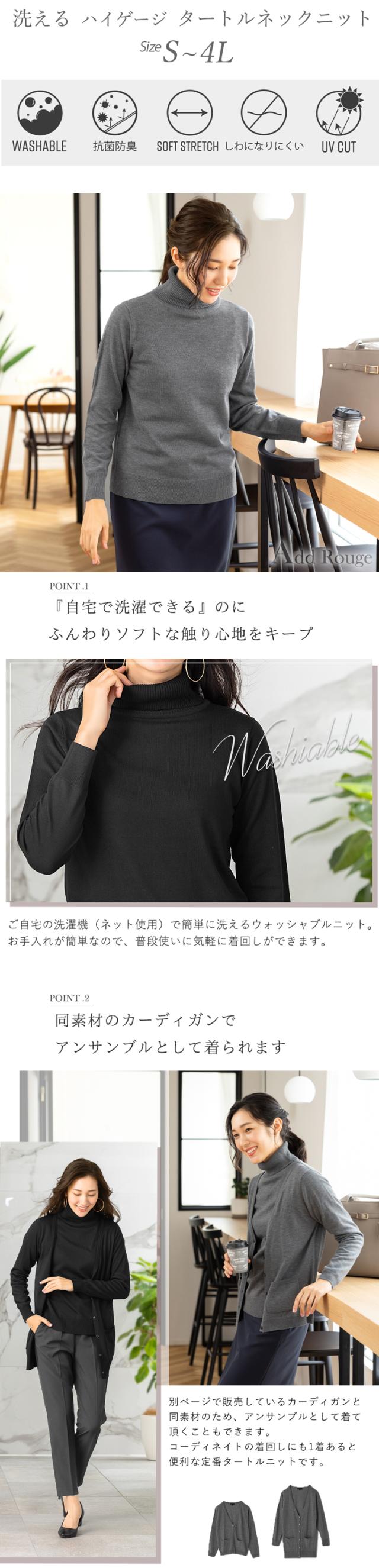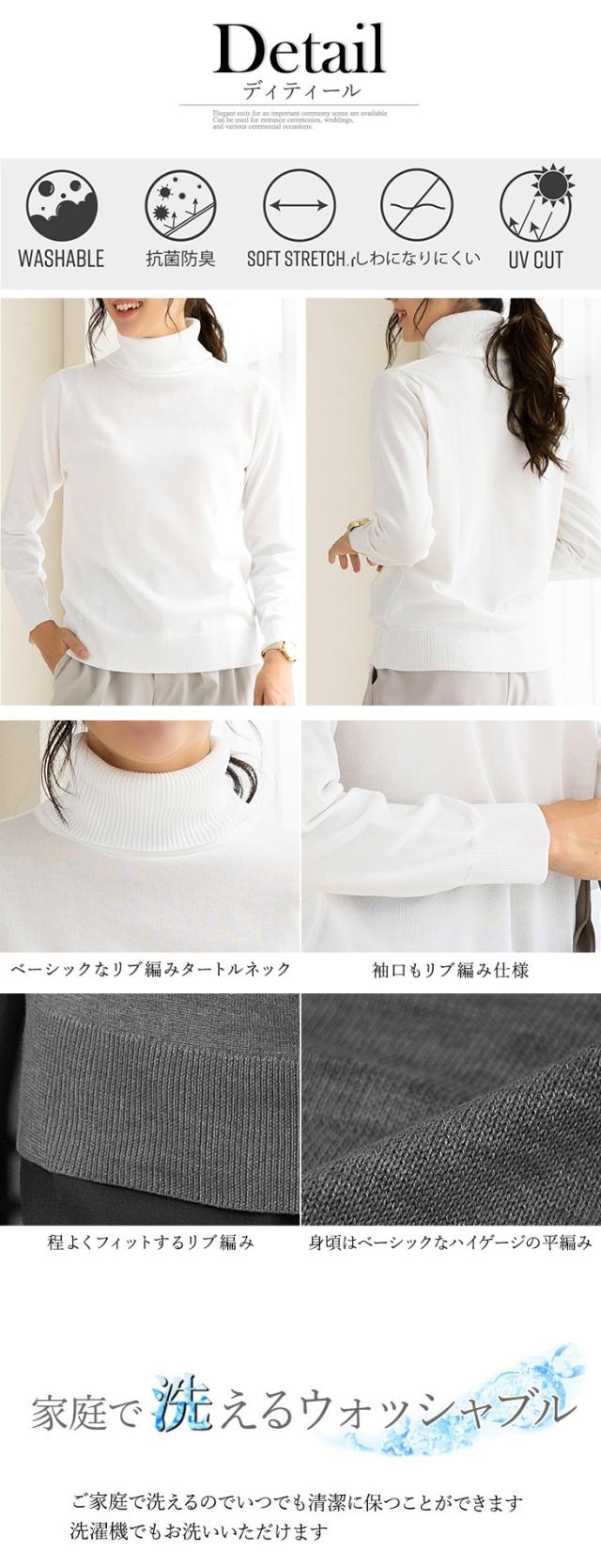 【送料無料】タートルネック ニット ハイゲージ 長袖 単品 家庭で洗える 通勤 オフィスカジュアル スーツ インナー 大きいサイズ 小さいサイズ ol ホワイト チャコール グレー 黒 洗える