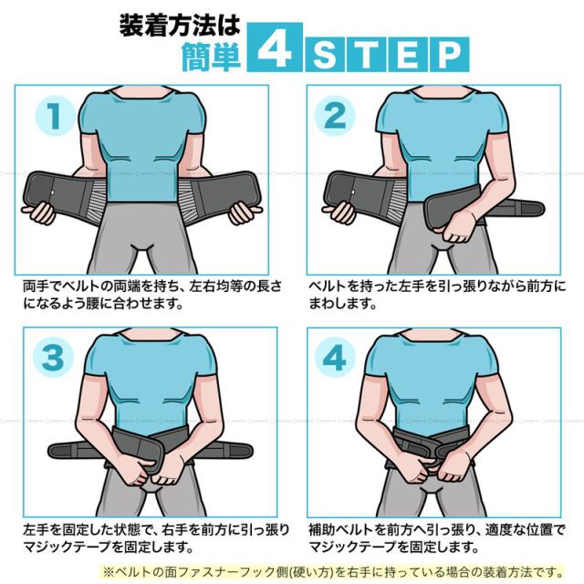 - 簡単に装着出来て、腰の痛みが軽減されました。サイズミスでMを注文したのですが、Lを注文すれば良かったと思っています。
