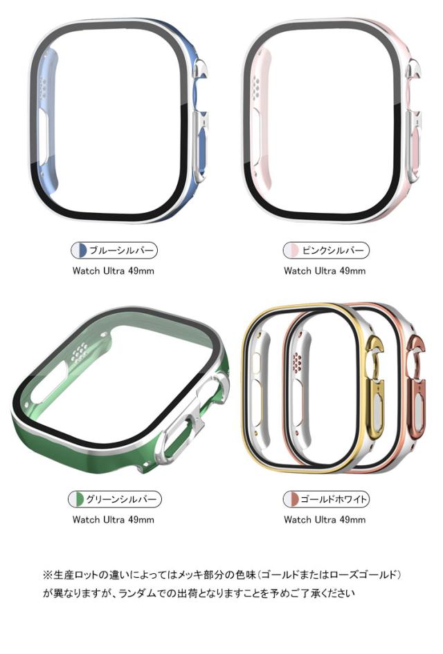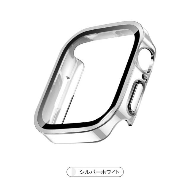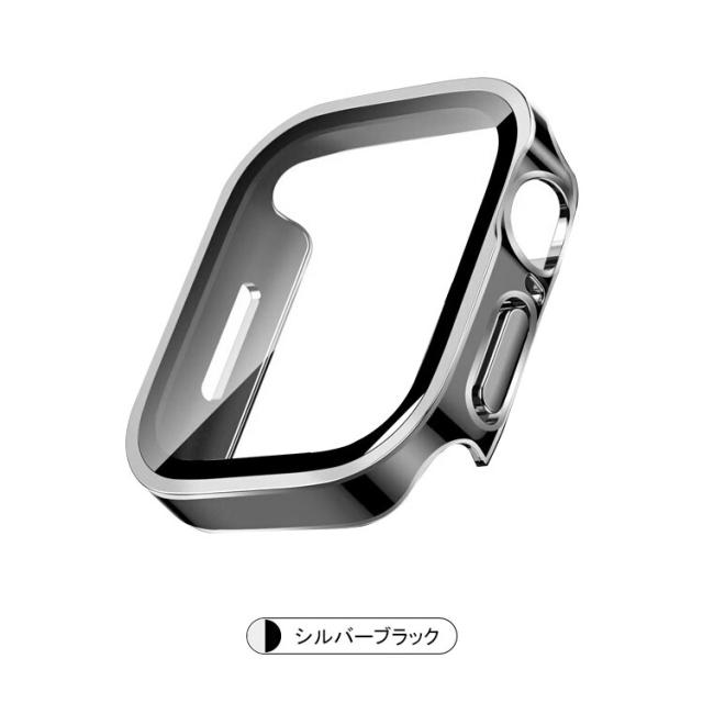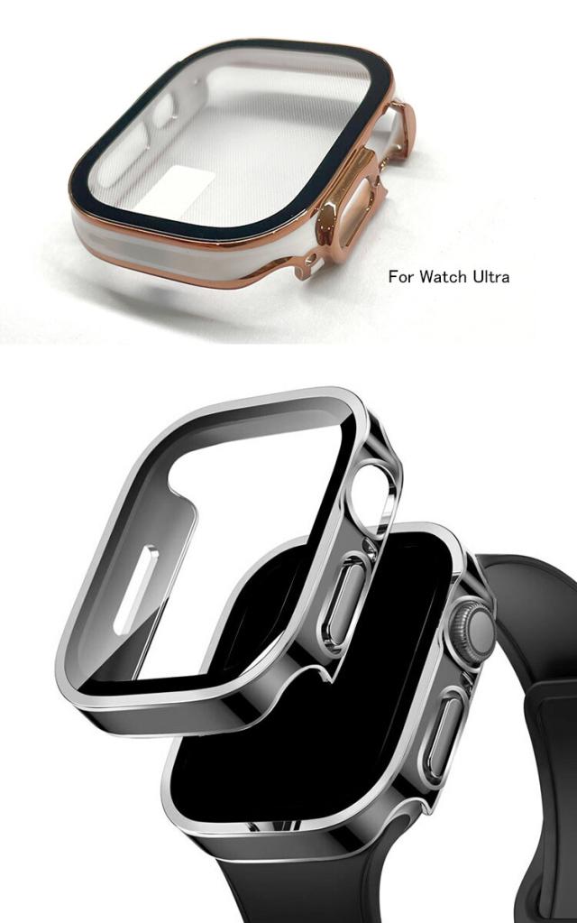 Apple Watch Series 9/8/7/Ultra 2/1 ケース カバー メッキ 強化ガラス使用 全面保護 液晶保護ケース アップルウォッチ シリーズ9/8/7/ウルトラ2/1 41mm/45mm/49mm クリア フィルム一体 強化ガラス 簡易着脱 傷防止 ハードケース