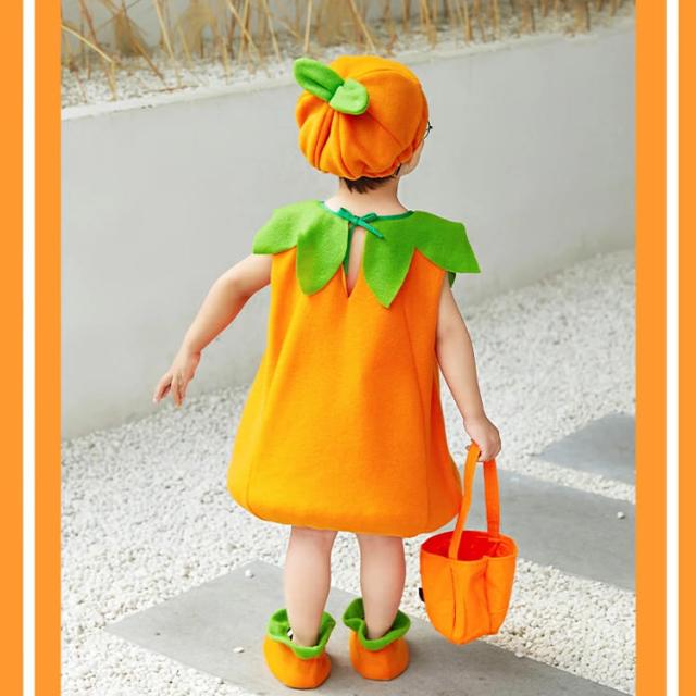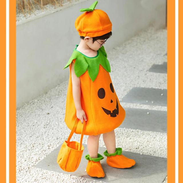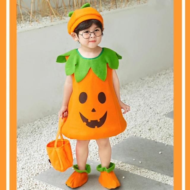 柔らかくて通気性よい素材が採用され、3D立体的な仕立てを仕上げている子供に大人気の可愛いカボチャ服!