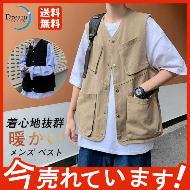 ベスト メンズ 袖なし アメカジ 送料無料 無地 春 夏 秋 フィッシングベスト ミリタリーベスト カメラマン マウンテンベスト
