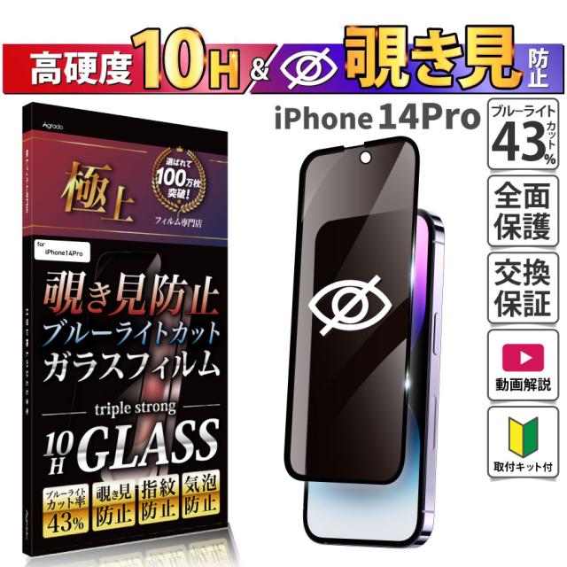 iPhone 14 Pro ガラスフィルム 覗き見防止 ブルーライトカット かんたん 安心 プライバシー 全面保護 スマホフィルム 強化ガラス のぞき見防止 保証 アイフォン アイホン おまけ付き 防水ケース ポイント消化 除き見
