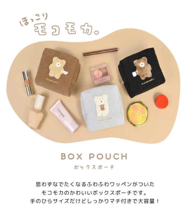 ポーチ 小物入れ かわいい ボックスポーチ ミニポーチ モコモカ クマ くま テディベア 可愛い レディース 女の子 小学生 中学生 高校生 大人 大人かわいい 社会人 娘 彼女 メイクポーチ 化粧ポーチ 化粧品 コスメ 雑貨 キャラクター プレゼント ギフト 誕生日 ホワイトデー