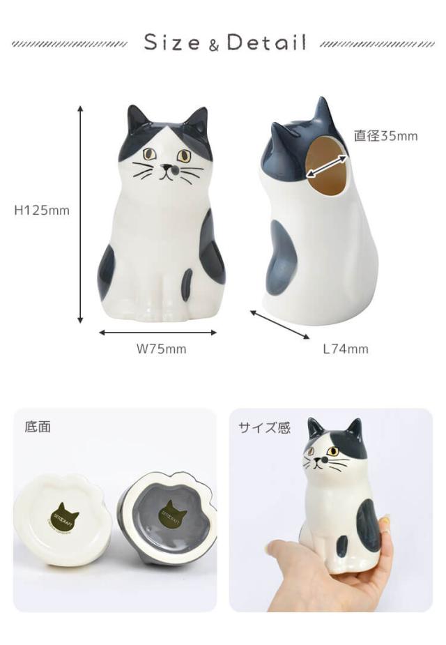 花瓶 一輪挿し 陶器 ペン立て おしゃれ 動物 猫 アニマル ペンスタンド 歯ブラシスタンド フラワーベース インテリア 置物 雑貨 オブジェ ミニ 小さい かわいい 誕生日 プレゼント お礼 箱付き 花びん ねこ ネコ